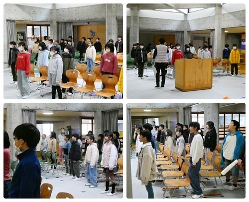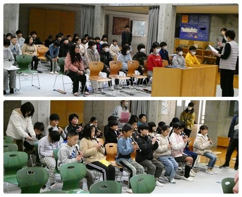 4,5年生合同で、卒業式の通し練習をしました。移動や礼のタイミング等の動きの確認、なかなか合同でできなかった歌やリコーダー、呼びかけの言葉の練習をしました。呼びかけはしっかりと声が出る子が多くなってきました。限られた時間ですが、6年生にしっかりと思いを伝えられるようにしていきたいです。