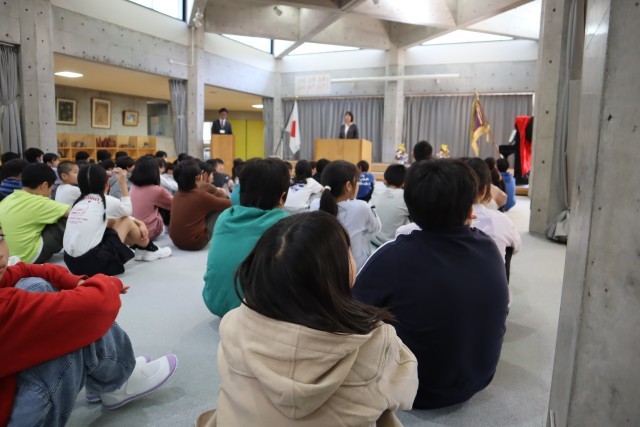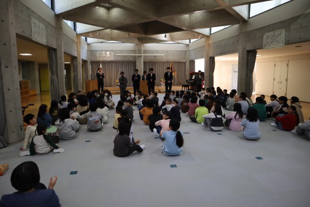今日は全員揃っての始業式でした。いつも通り元気のよい朝の挨拶から始まりました。着任式、始業式、そして全校で校歌を歌い、最後は1年生との対面式を行いました。担任発表の際には子どもたちからの温かい拍手で迎えられた担任の先生が、ちょっと緊張した様子で子どもたちの前に立って顔合わせを行いました。