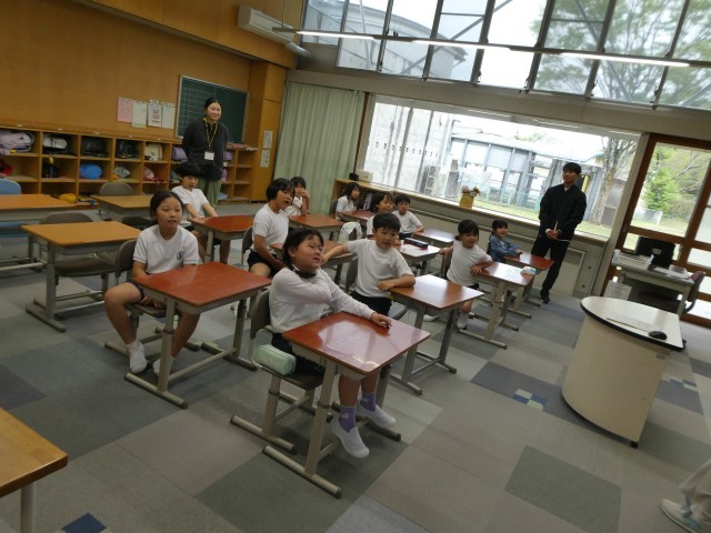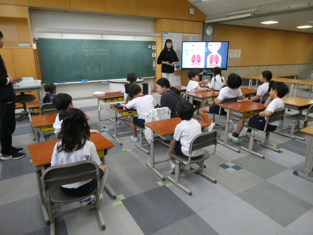 2年生の2時間目は身体測定でした。去年よりずいぶんと大きくなった子もたくさんいました。身体測定が終わったあとは、保健の先生から体に関するお話を聞きました。