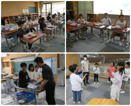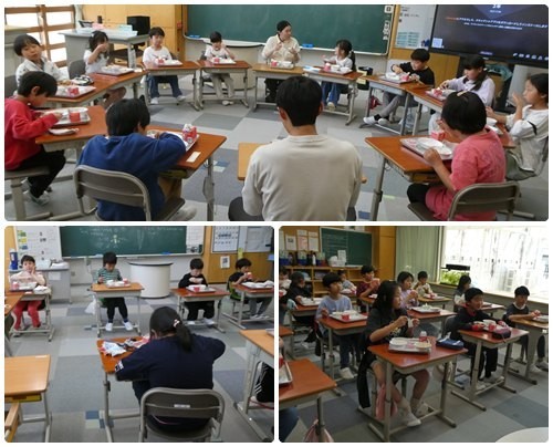 今日から待ちに待った給食がスタートしました。令和8年度スタートの給食は「ご飯、牛乳、麻婆豆腐、中華あえ、さくらゼリー」です。新しい担任の先生と食べる初めての給食。いろいろとルールを確認しながら準備をしたり、おかわりをしたりしていました。みんなしっかり食べて、どのクラスもほぼ完食です。ゼリーのじゃんけんは盛り上がっていました。