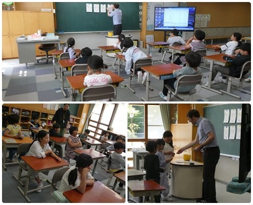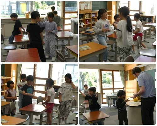 火曜日はALTの先生が来てくださる日です。「ハングリー」「ハッピー」などと元気のいい声が聞こえてきます。そのあとのゲームも楽しそう。