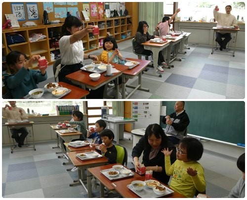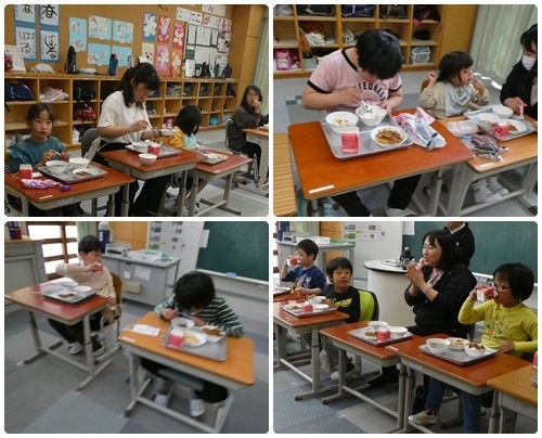 明日がお誕生日の子がいて、みんなで「ハッピーバースデー トゥー ユー」を歌って牛乳でお祝いしていました。今日のメニューはみんなが大好きなビビンバです。みんなたくさん食べました。