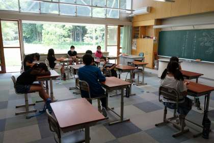6年生になると、全部自分たちでやれるようになっていますが、コロナウイルス感染症拡大防止のため、おかずは担任が配膳します。ご飯は当番の児童が入れますが、1年生と違って慣れたものですね。他の児童は静かに待っているのは1年生と同じです。