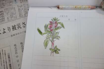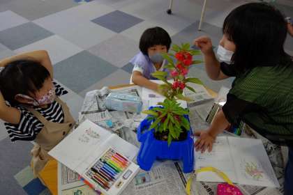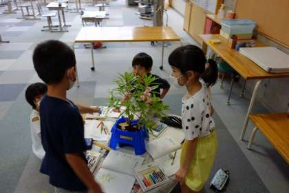 ホウセンカの観察です。花の数、葉の数をしっかりと考えています。その上、茎の太さも調べていました。さて、茎の太さはどうやって調べるのでしょう。答えは3年生聞いてください。