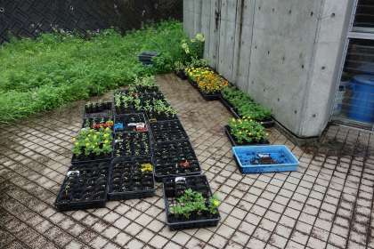 花壇に植える花々は、その何ヶ月も前から育てています。本校では、児童の目につきにくい校舎裏で用務員が行っています。用務員は草刈りもやります。ほんと重労働であり、縁の下の力持ちなんです。