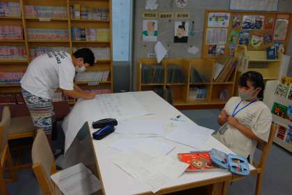 環境と水のまとめがどんどんと進んでいます。B紙にマジックで書く児童、ポスターを作成する児童のほかに、パソコンでグラフを作成している児童もいました。情緒面に訴えて環境の大切さ伝えるだけでなく、自分たちで資料を作り、科学的に訴えることで発表に深みがでます。なかなかやります6年生!