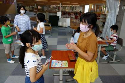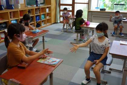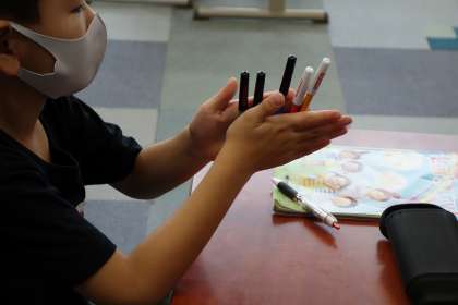 誰もが鉛筆をたくさん握っています。なぜかというと今日の英語は「How many」の学習でした。数を問い、そして答えるのです。