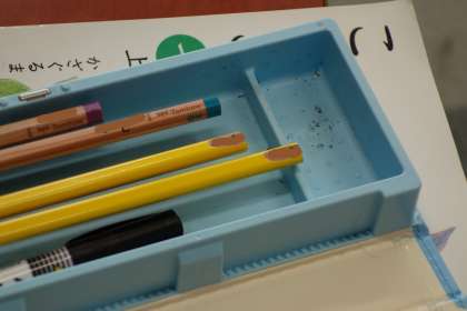 1つめは、鉛筆の記名です。削って名前が書いてありました。懐かしさとともに保護者の愛情を感じました。