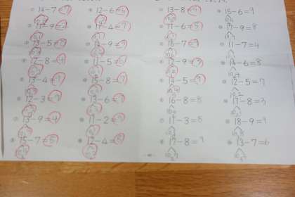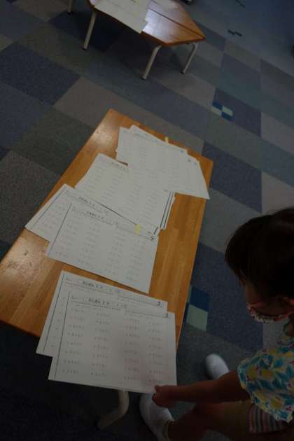 計算の技能は、数多く取り組むことも大切です。自分のペースで取り組み、自分でまるづけもします。目が輝いています!