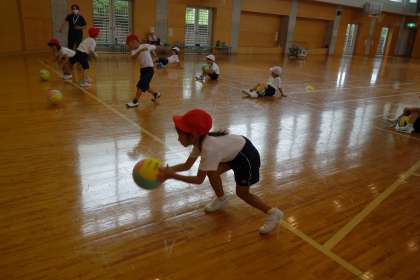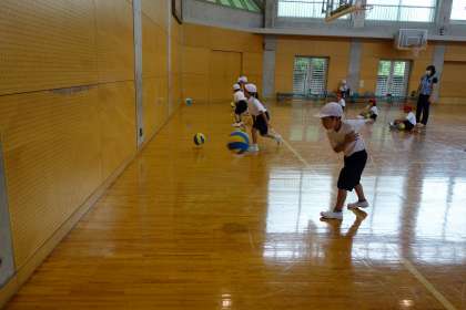 壁にボールをぶつけ、跳ね返ったボールをキャッチする場面に出会いました。思ったように投げられないし、思ったように取れないし苦労していました。まだ手が小さいので、ボールをうまく手に乗せて投げられないので大変です。