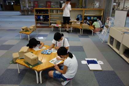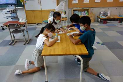 暖かい地方のくらしで沖縄についてグループで相談しながらまとめています。