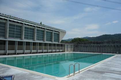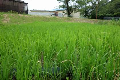 植えた稲も順調に成長しています。取水口には芹も生えてきました。草取りをした2年生が担任と草を捨てに行きました。プールは今年は実施しません。青く澄んだ水もちょっと濁り、緑色が感じられるようになりました。こちらも残念です。