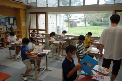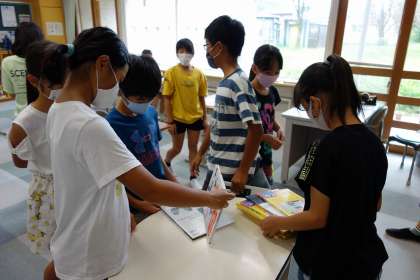 図書室の本が事前に用意されていました。全員に違う内容の本が行き渡ります。こういう時、多くは本の数が児童数分なかったり、内容が不十分な本が混じっていたりします。本校は、児童数が少ないこと、瀬戸市の分館も兼ねていることもあり、児童の調べ学習がしっかりとやれます。ありがたいなぁと思いました。