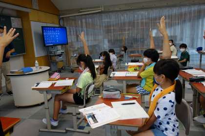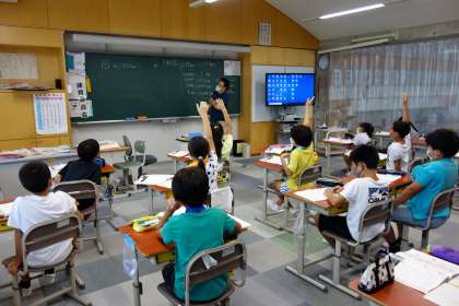メートルとキロメートルの変換をしています。コツはいろいろあるのです。たぶん4年生の中でも得意な子、不得意な子と分かれていると思います。何回か繰り返し学習するので、諦めないでね。