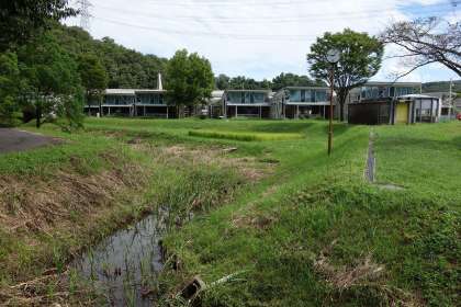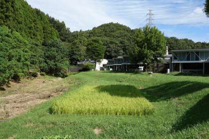 運動場側と違い、中庭側は草が生え、稲田や畑、ビオトープがある「癒やしの空間」となっています。昨日、ビオトープの様子を教育委員会の方が視察に来られ、再生について話し合いをしました。具体的なことは何も決まっていませんが、ビオトープの再生はぜひ行いたいと思っています。
