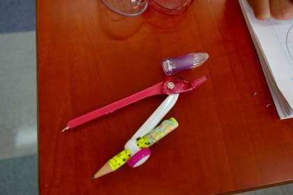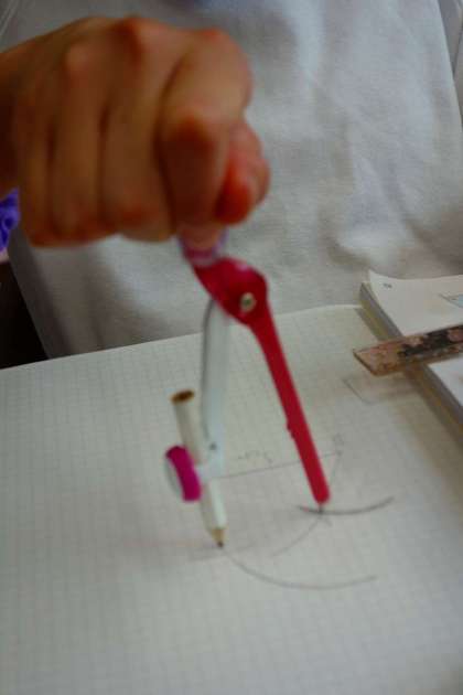5年生の算数で、コンパスを利用していました。その様子を見ていて、おやっと思うところがあったので紹介します。一番上の画像が以前からあるコンパス、二陣目の画像が、おやっと思ったコンパス、三番目の画像が、そのコンパスを回しているものです。