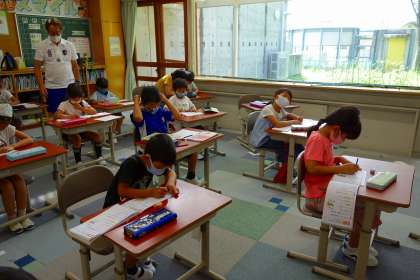 2年生は国語でした。木曜日に授業参観がありますので、児童の作品も掲示が進んでいます。