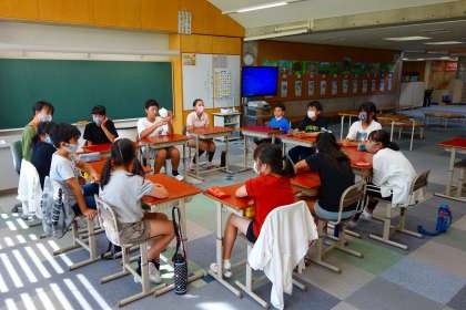 昨日(9月15日)で申し訳ないのですが、午後に6年生が四角になっていましたので、何をしているのかと聞くと、「クラスをよりよくする話し合いです」と教えてくれました。ふと中学校の生徒会を思い出しました。こうやって自分の考えをまとめ、みんなに発信したり、他者の意見を聞いたりしながら、よりよいものを作っていくという思考や方法を身につけていくのです。