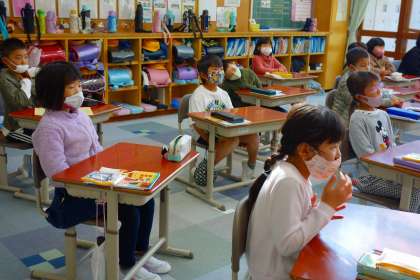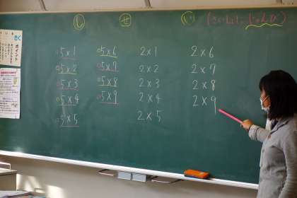 九九の暗唱をしていました。明確に覚えている子は、口が大きく開きます。そうでない子は開け方が小さかったり、口の動きが遅れます。ベテランになると一人一人チェックしなくてもほぼこれで個別の到達度がわかります。