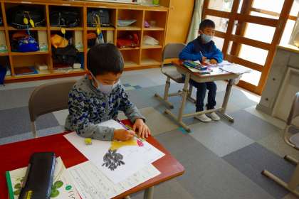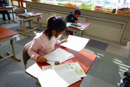 1年生はいつも元気に登校してきます。ですから朝から頑張ることができます。今朝も1時間目から真剣にやっていますね〜。