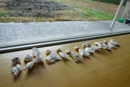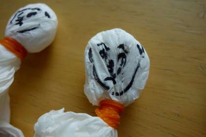 最近、天気の良い日が続いていますが、天気予報によると修学旅行の日に一部雨マークがでています。6年生の児童が「てるてるぼうず」を作って持ってきてくれました。クラスの人数分あって、顔も一つ一つちがいます。胴体には「なら・きょうと」と書いてあります。
