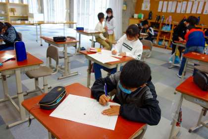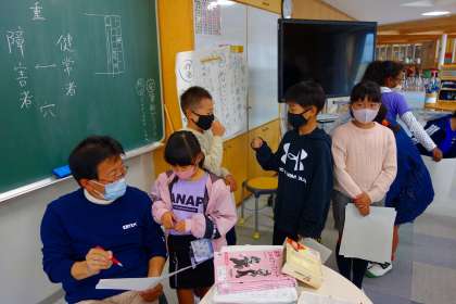 昨日の福祉実践教室をもとに、作文を書き、書き方の指導を受けています。このように行事を題材にして他の教科の学習生かすことはとてもいいことだと思いますね。