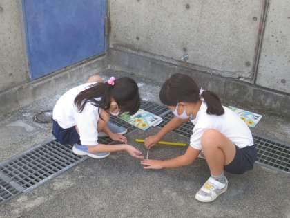 日向と日陰の地面の暖かさの違いや、日向と日陰のそれぞれで時間が経つと地面の温度がどのように変わるか観察しています。理科の実験や観察は大好きです。ワクワクしますね。