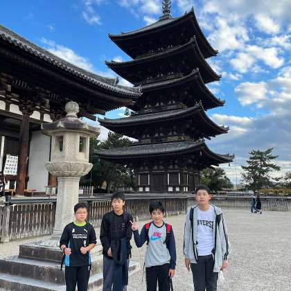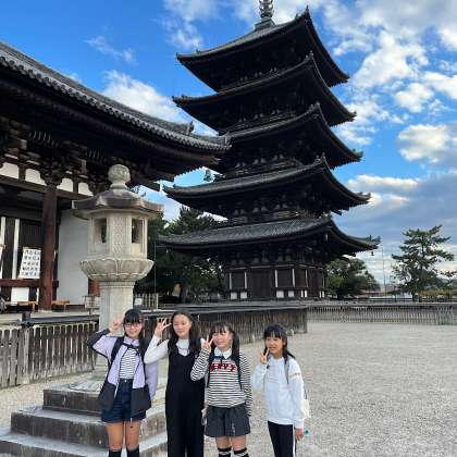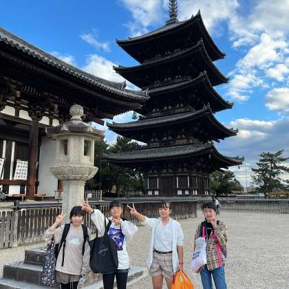 奈良公園を通って興福寺に向かいます。国宝館は撮影不可なので、五重塔の前でグループごとに記念写真を撮りました。