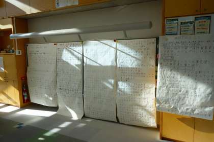 今年度、見学したところを中心に感想をB紙にまとめ、発表していました。製陶所の見学や消防署の見学が多かったです。製陶所の見学では、「よい陶器を作るためには、ものを丁寧に扱っている」という一言が光りました。