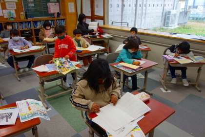 2年生は、冬休みの課題を配布していました。なぜ今日かというと日誌の課題が始まるからです。瀬戸市は冬休みを短縮して明日まで授業をしますが、日誌のこよみではすでに冬休みなので、早めに配布します。