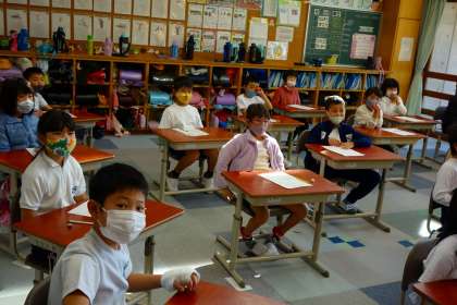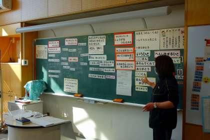 養護教諭による授業です。テーマは「ありがとう」です。大人ならありがとうと言うことの大切さは誰でも知っています。しかし、実際にありがとうを言い忘れてしまうことがあります。小さい頃からありがとうと言うことの大切さをきちんと理解する必要があります。養護教諭の観点から、その授業をしてもらいました。