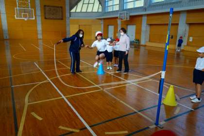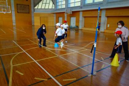 大縄跳びですね。昔、ぐるんぐるんと回る縄の中に飛び込む恐怖があったことを思い出します。当たると痛いんだよな。。。と思っていましたが、入るタイミングを教えてもらったり、当たりそうになると回転を緩めてもらったりと配慮してもらっていました。