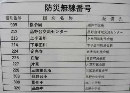 指令局である瀬戸市役所をはじめ,品野台地域交流センターや上半田川町民会館,下半田川町民会館,定光寺町民会館,白岩町民会館,片草町民会館,三国高原集会所,掛川小学校,品野中学校など多くの場所と連絡をとりあうことができるようになりました。
