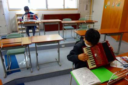 6年生もいろいろな楽器を使った練習をしていました。おのおのが練習しているので、何の曲なのかはわかりませんでしたが、楽譜を見たら「銀河鉄道999」でした。アニメができてからもう何十年も経っていますが、いつまでも親しまれるアニメですね。