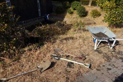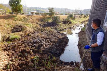 やれる範囲でそれらの堆積物を取り除いていますが、木や野草の根がからみつき、かなり力仕事となっています。とっても、とっても大変な作業なんです。