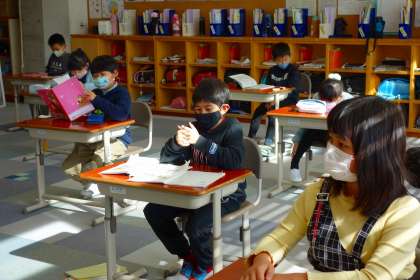 自分が読んだ本の紹介をしていました。もう何回もやっているので、一人一人のノートを見てもしっかりと書き込んであります。発表も手慣れたもので、前で堂々と話しています。
