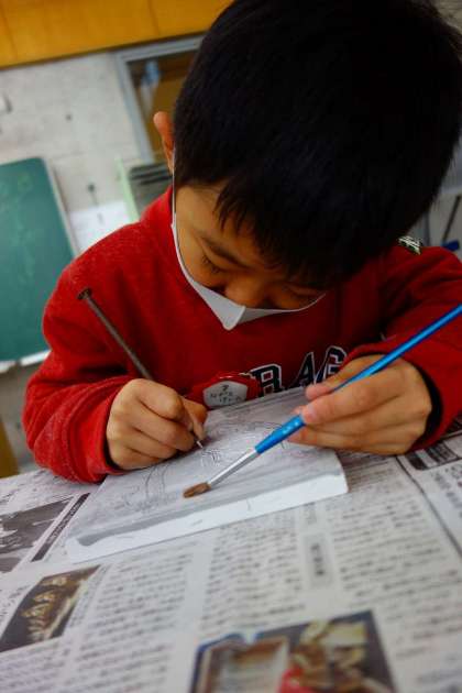 昨日も1年生は石膏版画を載せましたが、今日は児童のやる気がわかるように、迫力ある画像を撮ってみました。