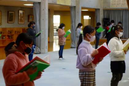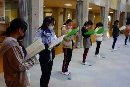 いよいよ立って歌います。ハミング程度の音量なのですが、とても澄んだ気持ちのいい声が響いています。担任も「きれい〜」と褒めていました。私も心の中で拍手です。