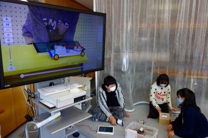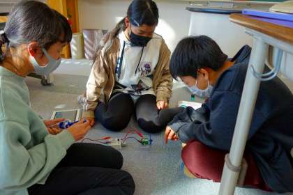 プログラミング学習のつづきです。会話をきいていると「あっ、ちょっと待ってー」とか、「えっ、これでいいの?」とか、「これさ、こうやったほうがよくない?」という言葉が聞かれます。グループごとにとても集中して深く思考し、取り組んでいることがわかりません。こういうのが新しい学習指導要領に書かれている「主体的で深い学び」ということです。