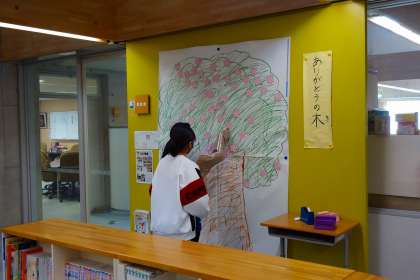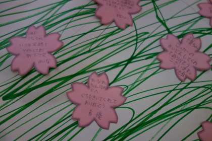 感謝の木に桜が咲き始めました。どんどん増えています。