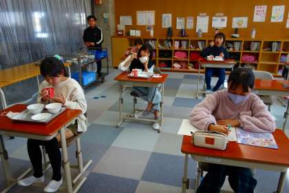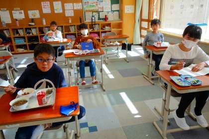 5年生に行くと、食べ終わっている子はちゃんとマスクをしていますね。