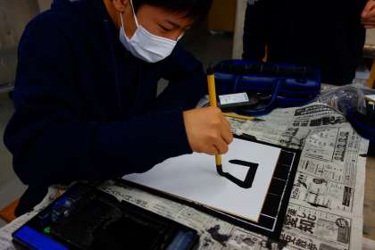意を決して書き始めました。とたんに皆が見学に来ます。その中で書き進め、完成するとみんなから拍手が出ました。