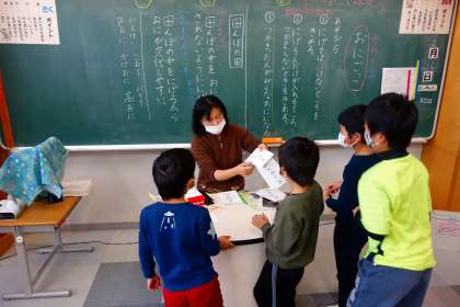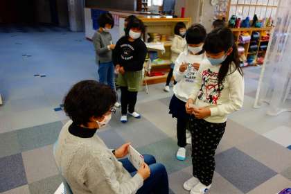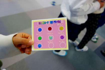 九九がちゃんと言えるように練習しています。〇の段がきちんと言えたら、1個ずつシールがもらえるようですね。