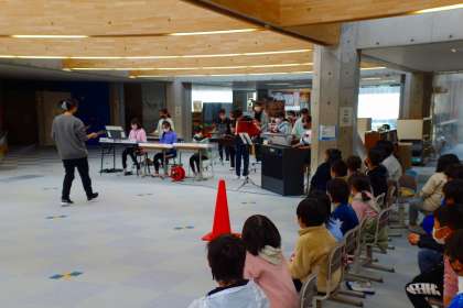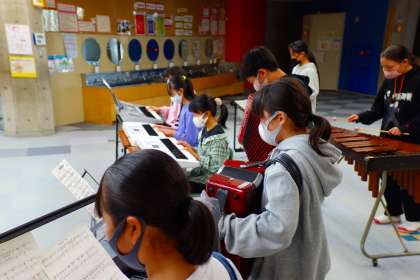 続いて合奏です。学校にある多くの楽器を使い、銀河鉄道999を演奏してくれました。低学年の児童はこんなに楽器を使いこなせるのをみて、さぞびっくりしたことでしょう。
