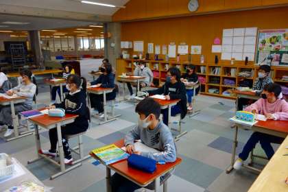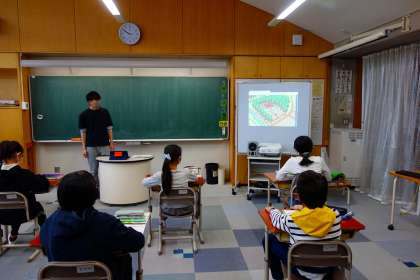 森林の働きを教科書にあるイラストで学習しています。たくさんの意見がでています。このあとに各自の手元にあるプリントにまとめていくのでしよう。友だちの意見をしっかり聞いていないと、あとで書けませんね。