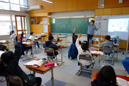 文章題を解くために、表を作成し、穴埋めしながら答えを導き出すことを学習していました。手も挙がりますが、声で答えをいっちゃうことも多いのは、いつの時代も変わりませんね。