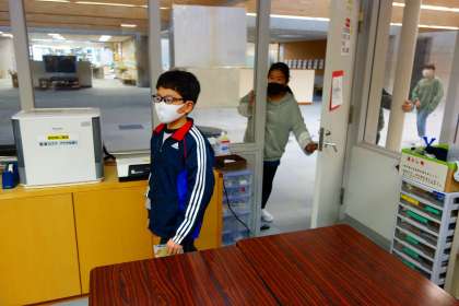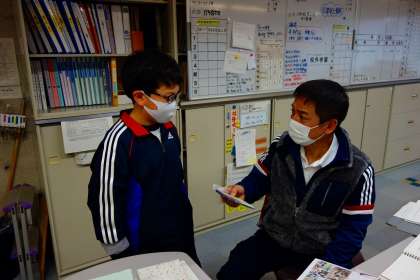 職員室にはなかなか入ることがないので、ちょっと緊張している6年生です。