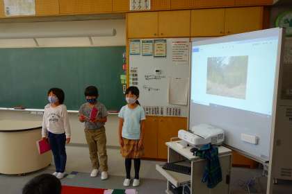次の班は裏山です。地域の方や自分たちで整備していることも発表してくれました。遊ぶだけでなく、体力もつくことを言ってくれたのはとても意義深いです。