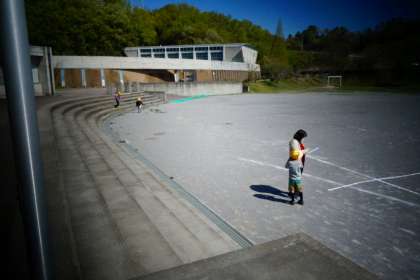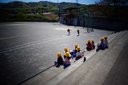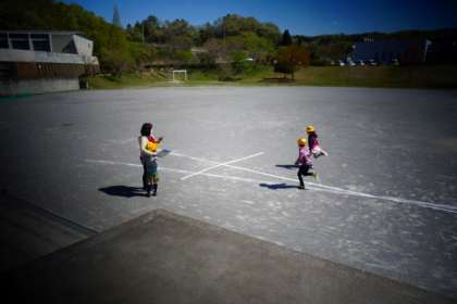 スタートしてゴールするだけでなく、そのまま端まで走り続けます。担任が「もういいよ」というまで走っています。微笑ましいですね〜