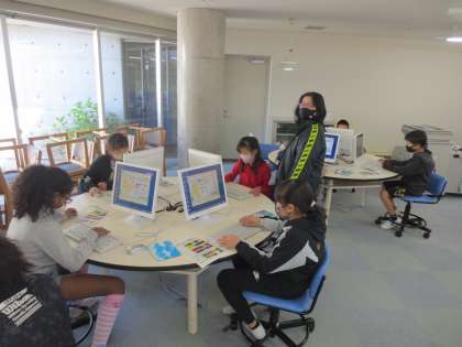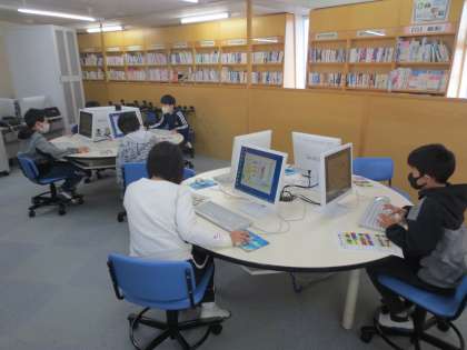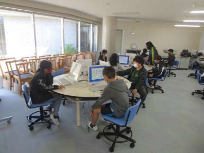 メディアルームで、自分の時間割表を自ら作成しています。印刷をする関係でタブレットではやれないのですね。保護者の方はどんな時間割を作ってきたのか、一度見てやってください。
